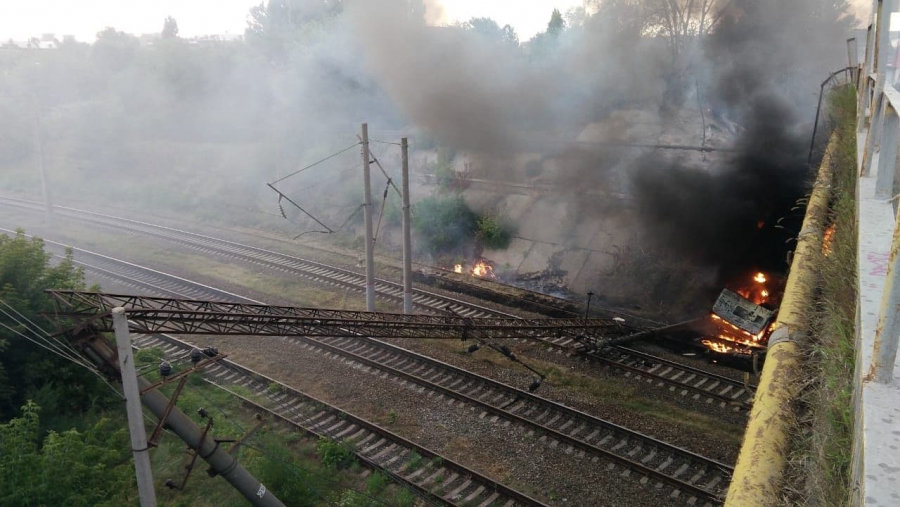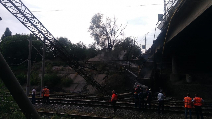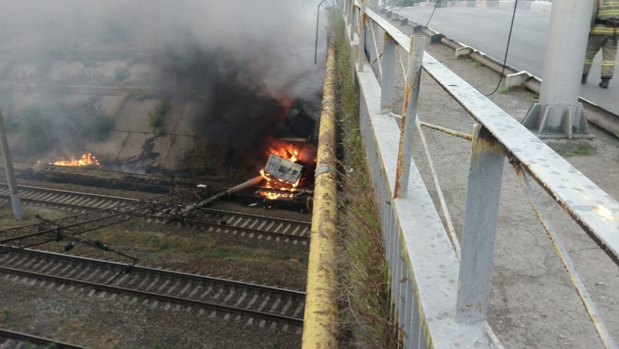 Между тем в соцсетях распространяют фотографии и видео с места, где видно, что на мосту по той стороне, где вырывается пламя. В связи с ЧП временно прекращено движение транспорта.