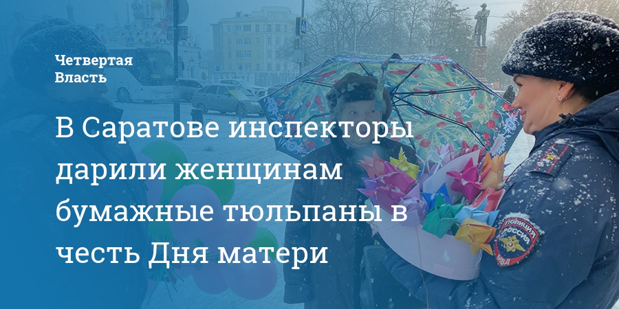 В Саратове инспекторы дарили женщинам бумажные тюльпаны в честь Дня матери
