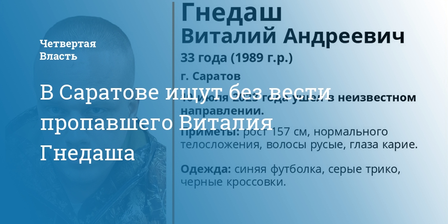 В Саратове ищут без вести пропавшего Виталия Гнедаша