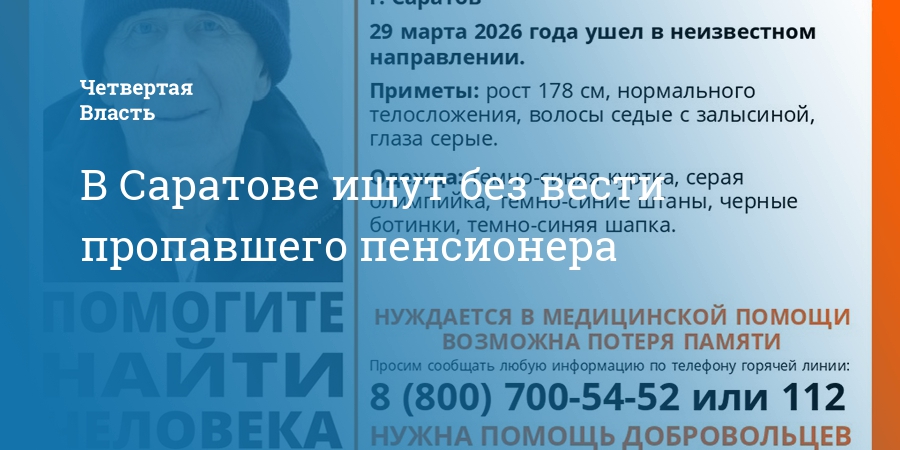 В Саратове ищут без вести пропавшего 78-летнего Виктора Пипунырова. Об этом сообщает поисково-спасательный отряд «Лиза Алерт».