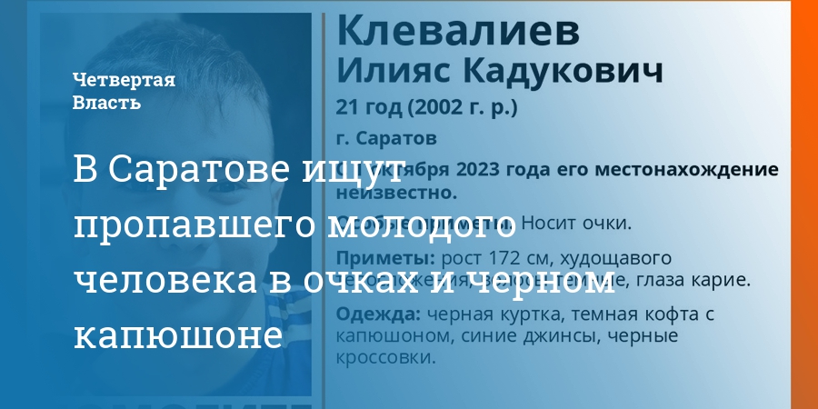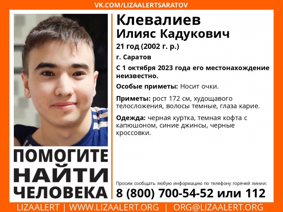 В Саратове разыскивают пропавшего 21-летнего Илияса Клевалиева. Об этом сообщили волонтеры поискового отряда «Лиза Алерт».