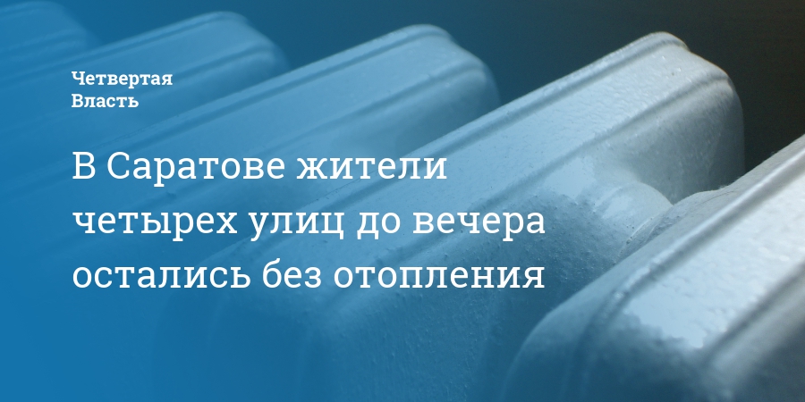 Сегодня в Саратове жители четырех улиц остались без отопления до вечера. Это связано с ремонтом на сетях теплоснабжения по улице Зарубина. Об этом сообщило ООО «КВС».