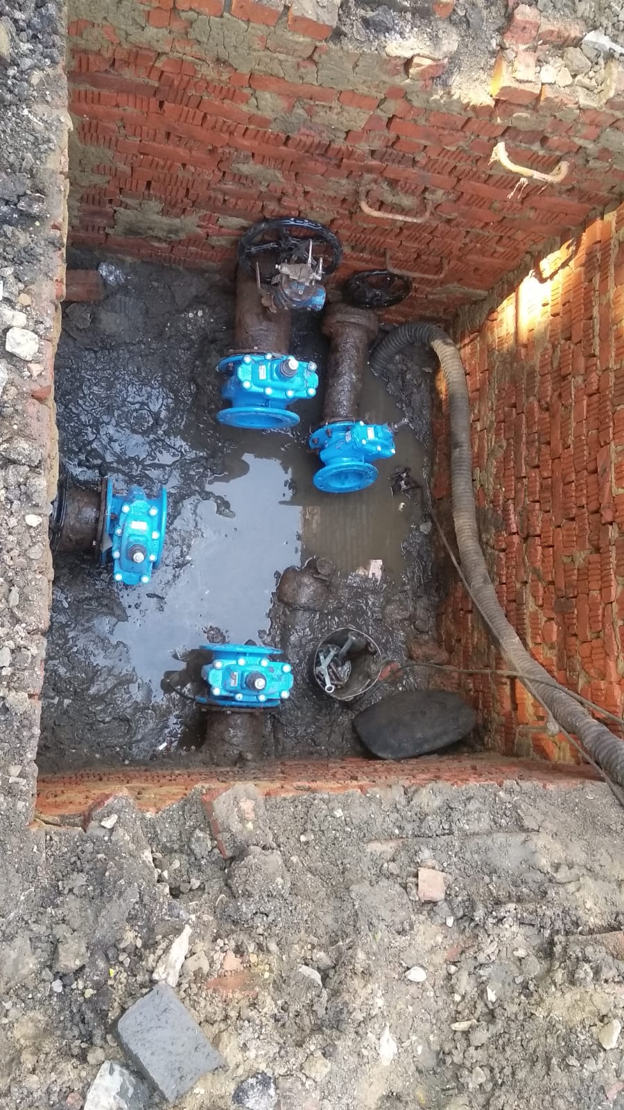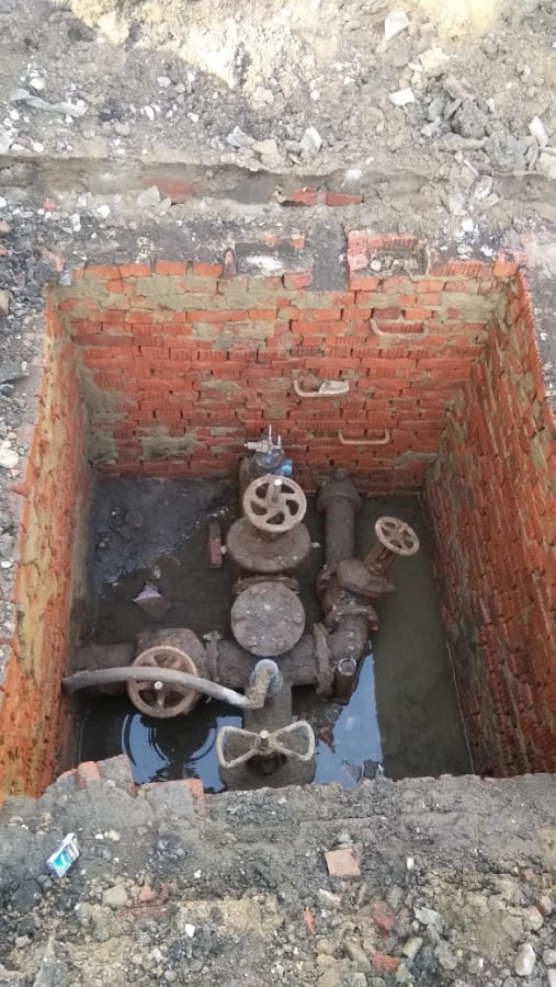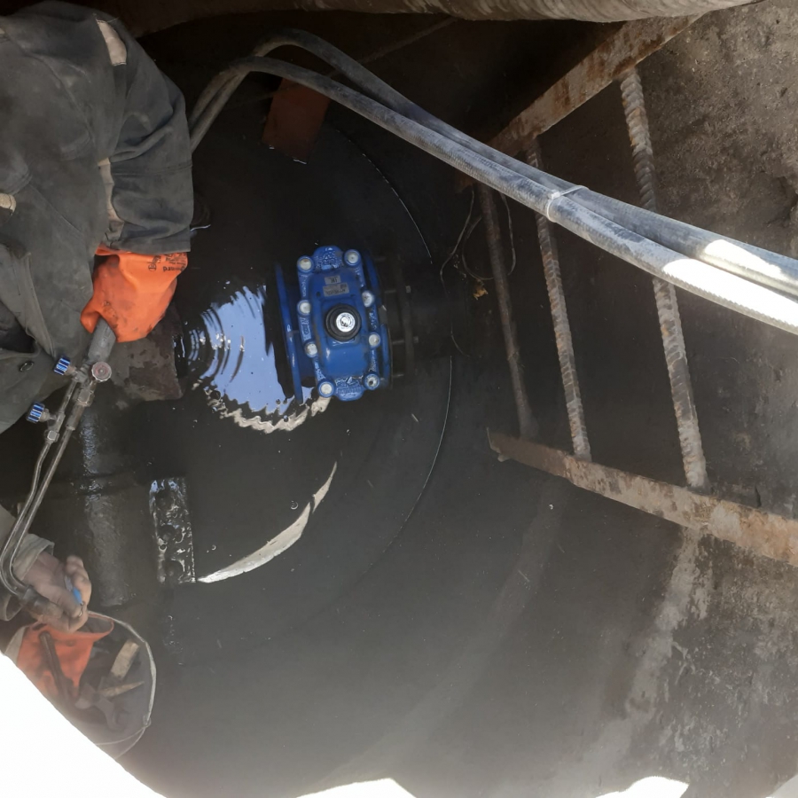 На текущий момент старая запорная арматура демонтирована. Специалисты выполняют монтаж новых задвижек. Всего в ходе работ планируется заменить 8 единиц различного диаметра (от d150 мм до d300 мм). Мероприятия по замене запорной арматуры осуществляются параллельно сразу на 5 точках.
