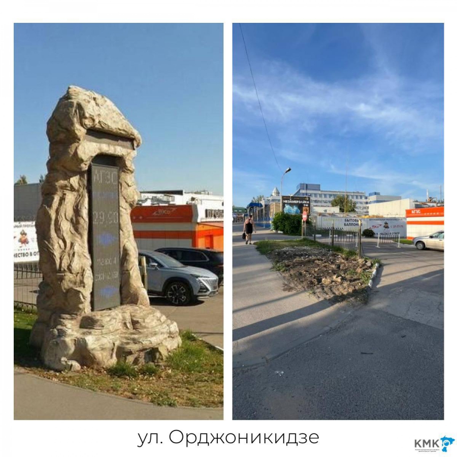 Рекламная стела располагалась по улице Орджоникидзе. Судя по фото, на сооружении, выполненном в виде каменной глыбы, располагалась реклама автомобильной газозаправочной станции (АГЗС). После работы, проведенной комитетом муниципального контроля, незаконную конструкцию демонтировали.