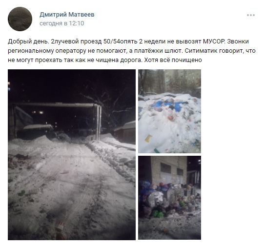 Во всех случаях районные администрации отвечают в комментариях, что претензии регоператору направлены, а на устранение проблем дается 3-5 дней.