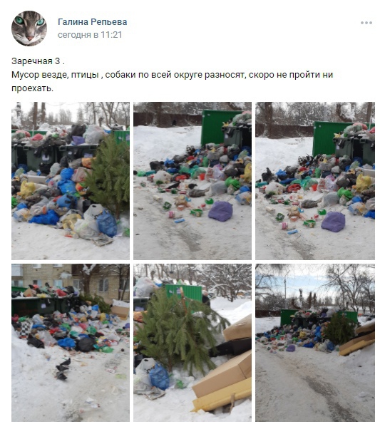 Значительная часть жалоб касается Заводского района. Например, огромная свалка образовалась у дома №223 по улице Огородной (3-й Жилучасток). Там рядом находится остановка общественного транспорта. Отходов уже настолько много, что под ним совершенно не видно мусорных контейнеров. По словам автора фотографии, мусор перестали вывозить еще до Нового года. Сейчас отходы начали разносить по округе собаки и птицы, и к тому же эта свалка источает «аромат».