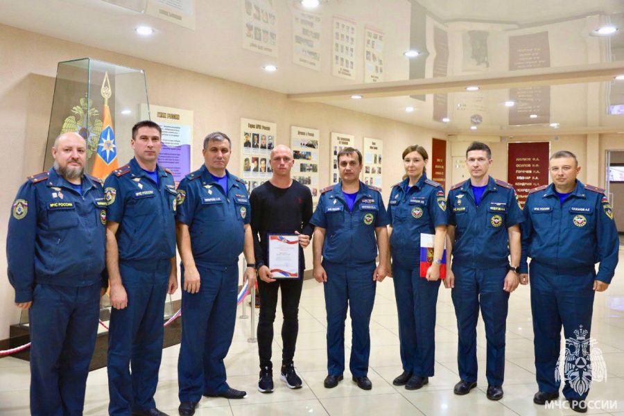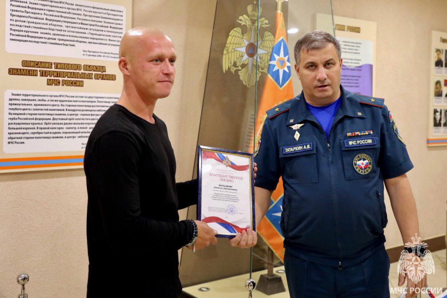 Руководитель ГУ МЧС Алексей Татаркин пожал руку матросу, вручил благодарственное письмо и отметил, что в ведомстве всегда рады таким отважным парням.