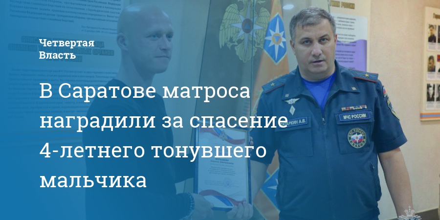 В Саратове матроса наградили за спасение 4-летнего тонувшего мальчика