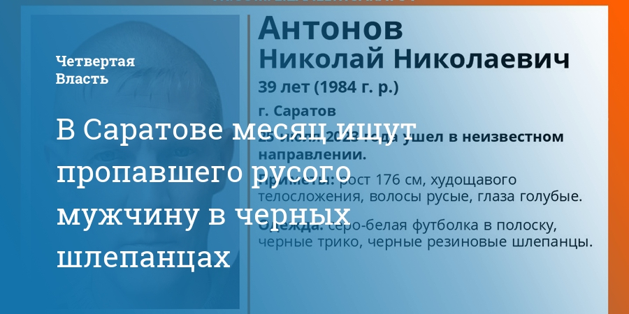 В Саратове месяц ищут пропавшего русого мужчину в черных шлепанцах