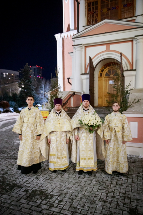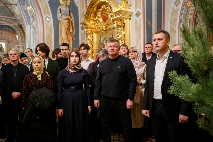 Хор под руководством регента Михаила Толчина исполнил торжественные песнопения, а прихожане повторяли за священниками слова молитв. Все присутствующие в храме вместе в святой праздник вославили рождение Христа.