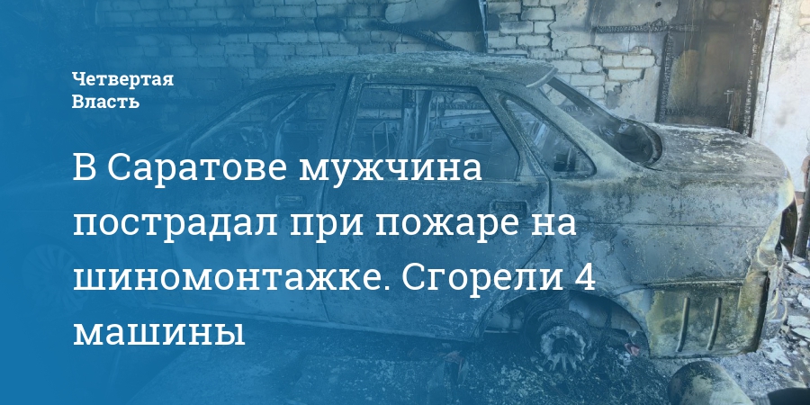 В Саратове мужчина пострадал при пожаре на шиномонтажке. Сгорели 4 машины