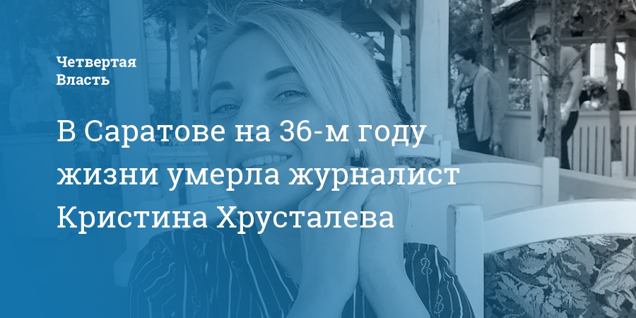 Сегодня ночью, 21 марта, в Саратове на 36-м году жизни умерла яркий представитель журналистской сферы Кристина Хрусталева. О трагедии сообщили в издании «164.ru», в котором она работала последние месяцы (информацию подтвердили родные, в Следственном комитете и в минздраве).