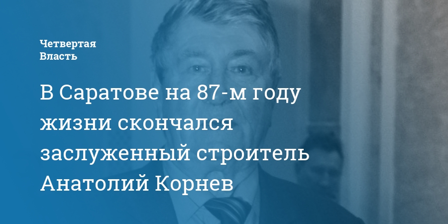В Саратове на 87-м году жизни скончался заслуженный строитель, Почетный гражданин города Анатолий Корнев. Печальной новостью поделились в пресс-службе администрации города.