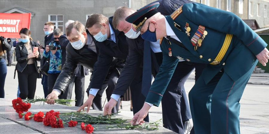 Завершился митинг торжественным возложением цветов к памятнику Юрию Гагарину.