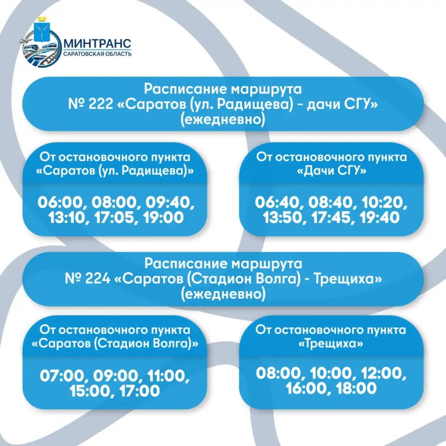 №224 «Саратов (от стадиона «Волга») – Трещиха»;