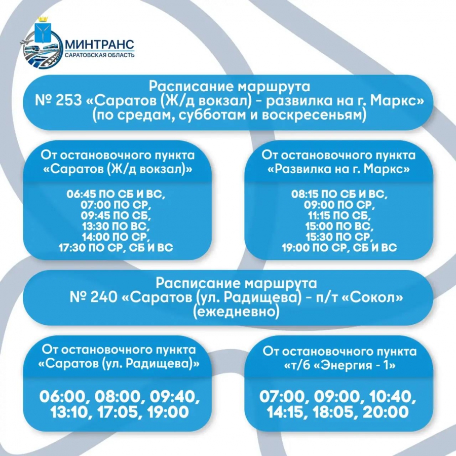 №253«Саратов (от ж/д вокзала) – развилка на Маркс»;