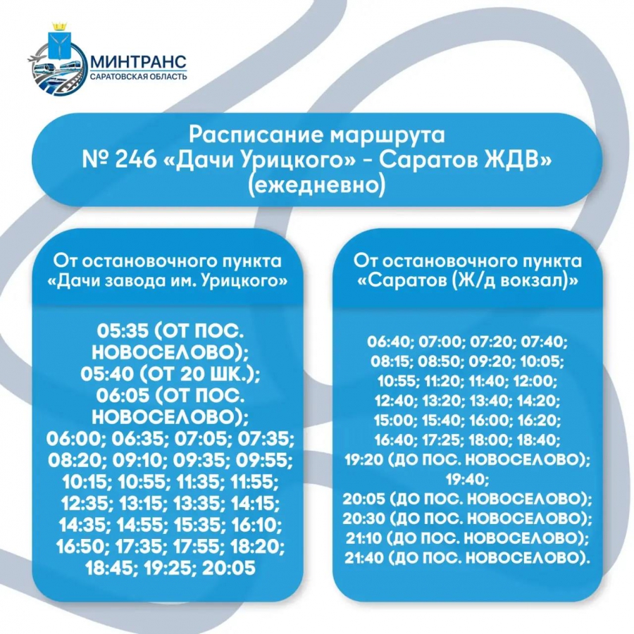 №246 «Дачи завода имени Урицкого – Саратов (от ж/д вокзала)»;