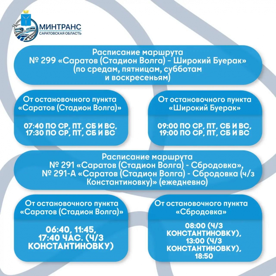 №299 «Саратов (от стадиона «Волга») – Широкий Буерак»;
