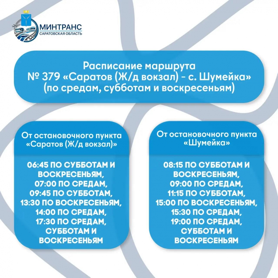 №379 «Саратов (от ж/д вокзала) – село Шумейка»;