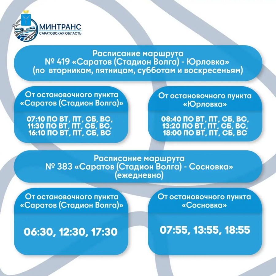 №383 «Саратов (от стадиона «Волга») – Сосновка»;