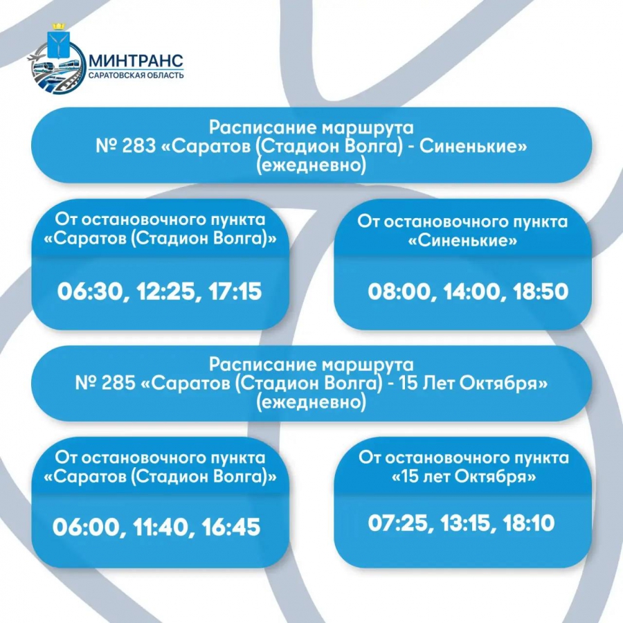 №283 «Саратов (от стадиона «Волга») – Синенькие»;