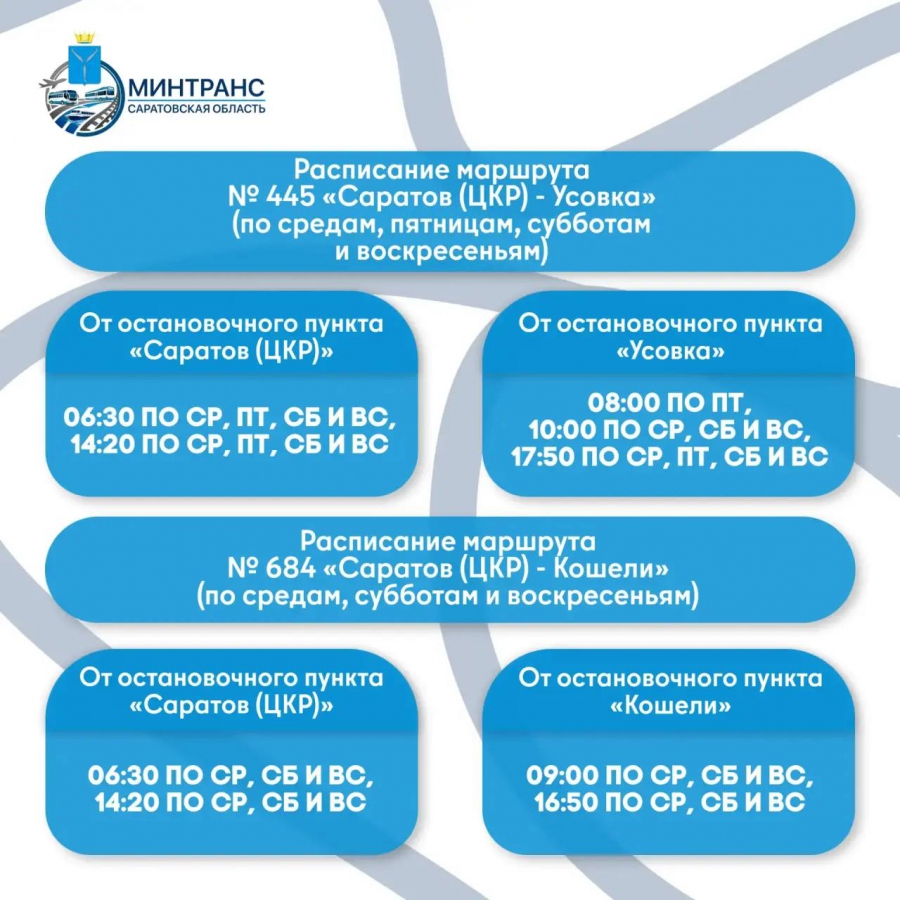 №445 «Саратов (от Сенного рынка) – Усовка»;