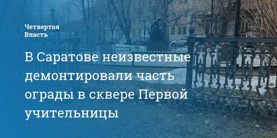 В Саратове неизвестные демонтировали часть ограды в сквере Первой учительницы