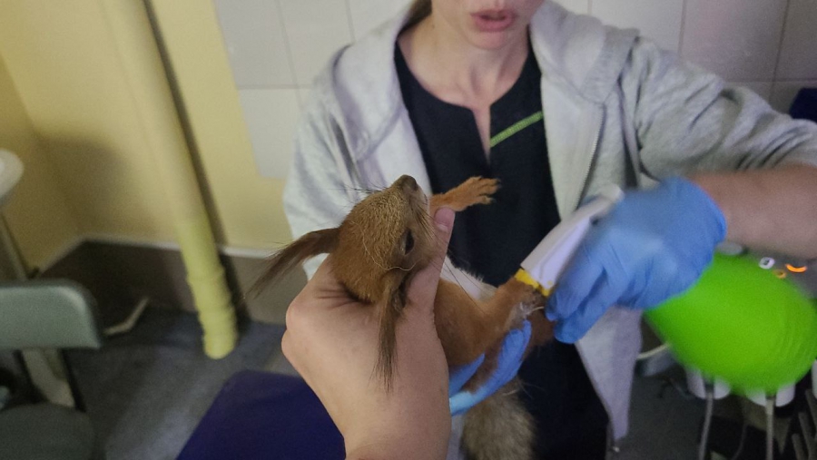 Женщина принесла в зооцентр белку, которую ранее обнаружила на улице. Грызун проживал у нее 10 дней, и все это время у него не работали задние лапы. Кроме того, специалисты сразу заметили, что живот белки увеличен, и повезли ее на УЗИ. Как выяснилось, детенышей пациент не вынашивал.