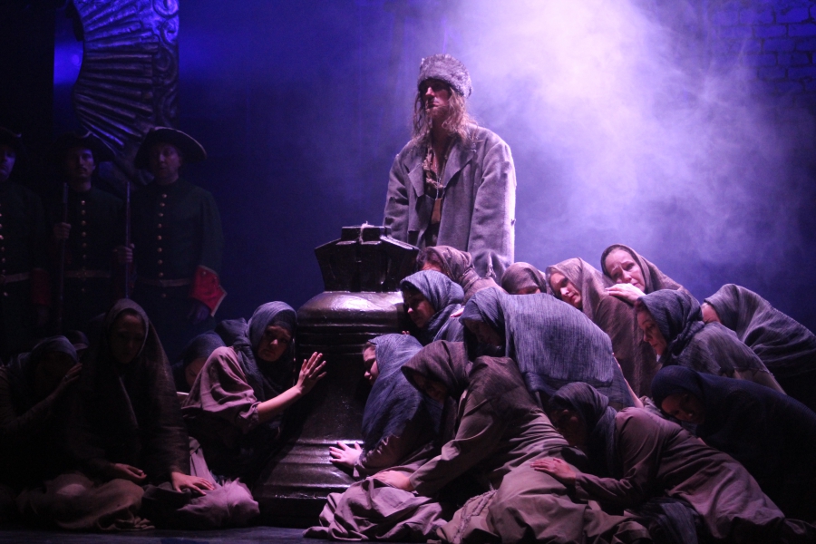 Музыка оркестра под управлением дирижера Юрия Кочнева завораживала зрителей, и они, увлеченные, будто оказывались в другом пространстве. Хор, участвующий в спектакле, вызывал гамму эмоций от веселья в сценах обучения Петра в Амстердаме до ужаса в эпизоде снятия колоколов.