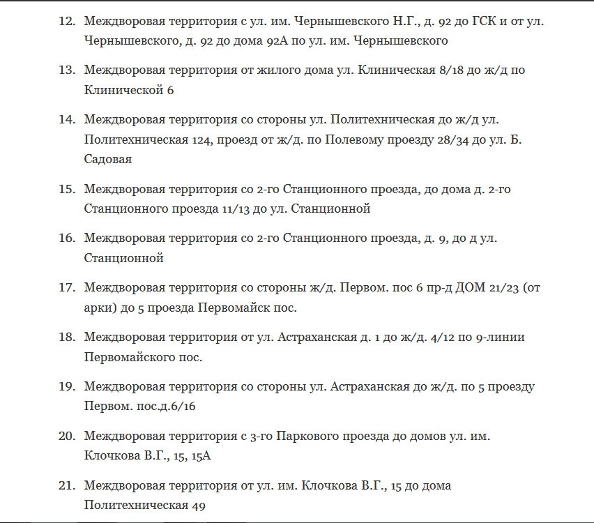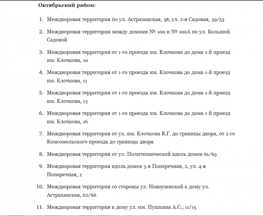 В Саратове опубликованы адреса для ремонта междворовых территорий