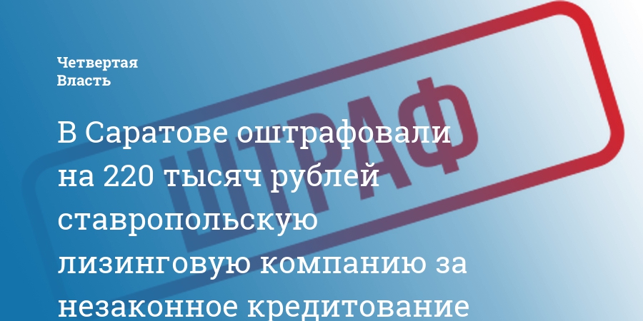 В Саратове оштрафовали на 220 тысяч рублей ставропольскую лизинговую компанию за незаконное кредитование