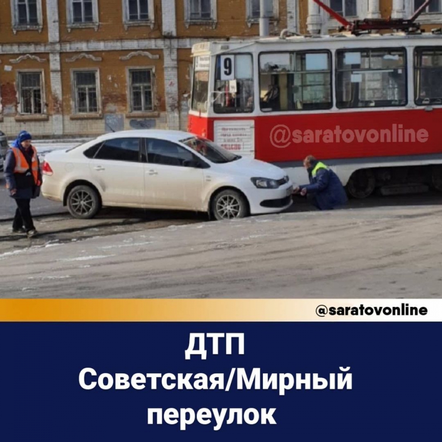 В Саратове на улице Советская случилось ДТП: легковой автомобиль «Фольксваген» попал под колеса движущемуся трамваю. Об этом сообщают пользователи в аккаунте «Саратов онлайн» социальной сети Инстаграм.