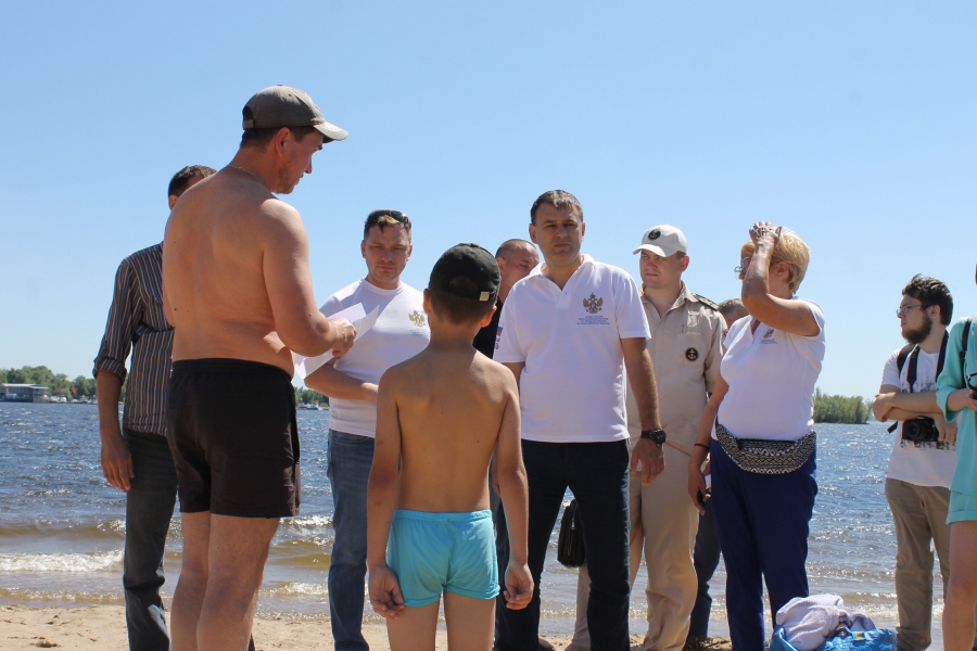 Проверяющие начали свой обход с солярия в Затоне. Примечательно, что при виде официальных лиц многие начали выбегать из воды. Татьяна Загородняя подошла к женщине с ребенком, которая находилась в воде рядом с берегом.