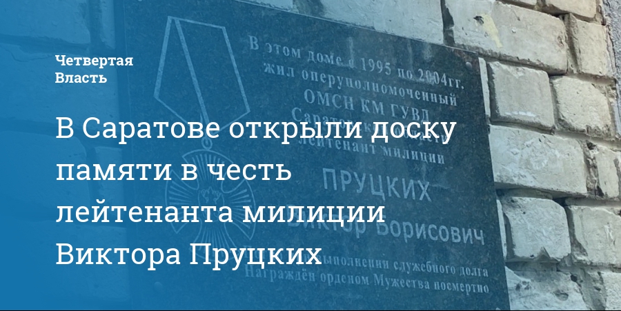 В Саратове состоялось торжественное открытие мемориальной доски в честь погибшего лейтенанта милиции Виктора Пруцких. Об этом сообщили сегодня, 20 июля, в региональном министерстве внутренней политики и общественных отношений.
