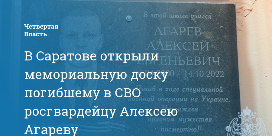 В Саратове открыли мемориальную доску погибшему в СВО росгвардейцу Алексею Агареву
