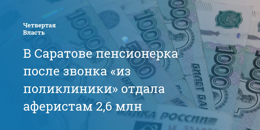 В Саратове пенсионерка после звонка «из поликлиники» отдала аферистам 2,6 млн