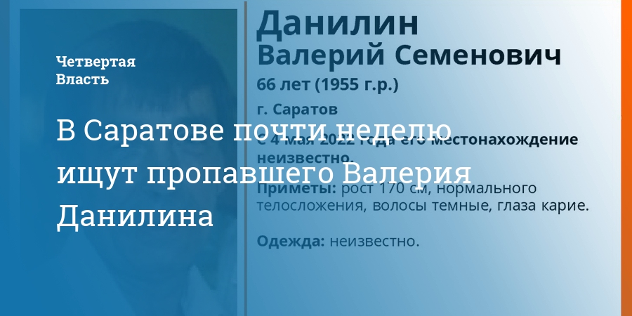 В Кировском районе Саратова без вести пропал 66-летний Валерий Данилин. О розыске мужчины сообщили в поисково-спасательном отряде «Лиза Алерт».