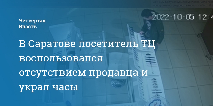 В Саратове раскрыта кража часов в одном из торговых центров Ленинского района. Об этом рассказали в региональном ГУ МВД, где также предоставили запись инцидента с видеокамеры в здании.