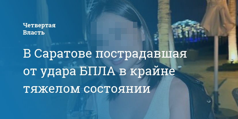 В Саратове 40-летняя женщина, которая пострадала в результате вчерашней атаки ВСУ беспилотным летательным аппаратом, находится в крайне тяжелом состоянии. Об этом сообщили «Четвертой Власти» в пресс-службе регионального министерства здравоохранения.