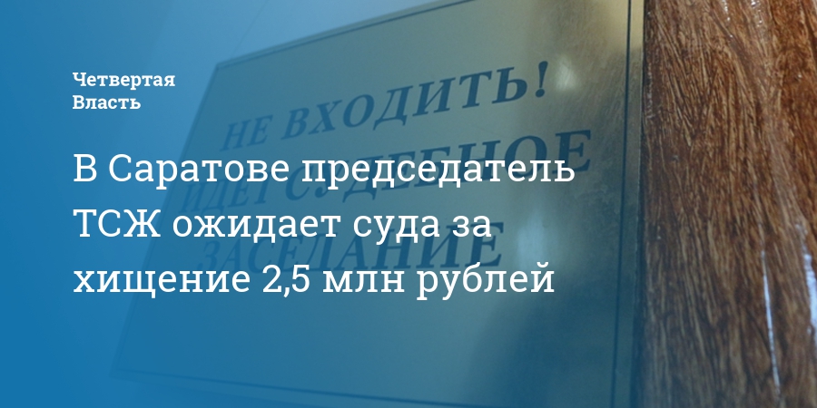 В Фрунзенском районе Саратова председатель правления товарищества собственников жилья (ТСЖ) ожидает суда за хищение 2,5 млн рублей. Об этом сообщает прокуратура области.