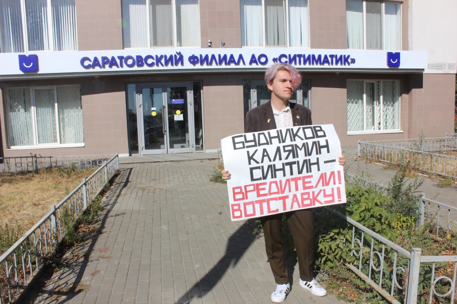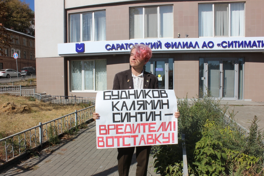 Сегодня, 30 сентября, у офиса саратовского филиала АО «Ситиматик» (улица Валовая, 2/10) состоялся очередной одиночный пикет. Активист Сергей от лица жителей города вновь потребовал отставки заместителей директора регоператора, отметив, что свою некомпетентность они доказывают уже в который раз.