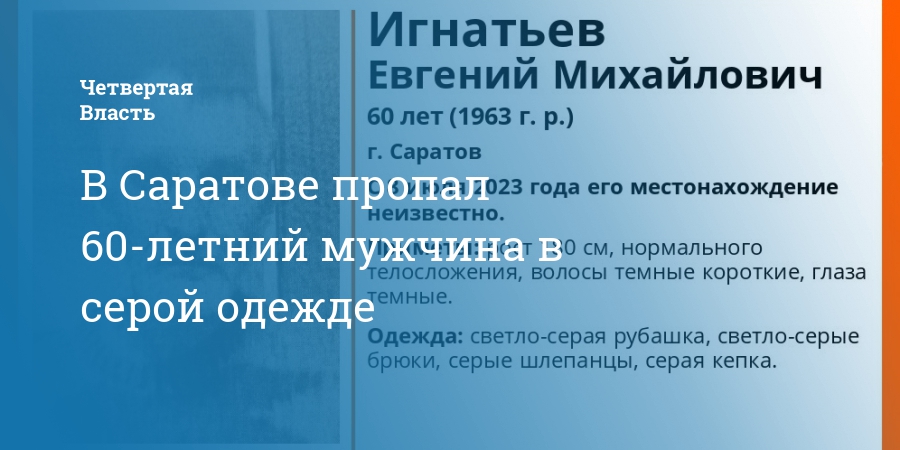 В Саратове пропал без вести 60-летний Евгений Игнатьев. Об этом сообщили в группе поискового отряда «ЛизаАлерт» соцсети «ВК».