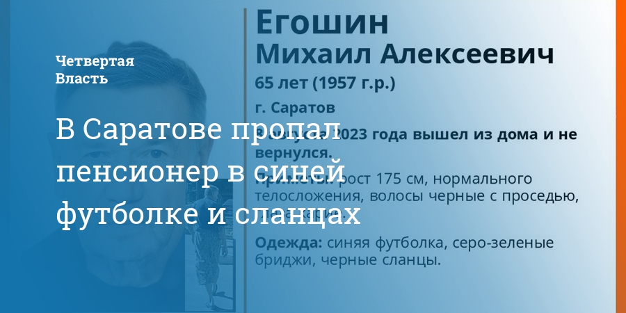 В Саратове пропал пенсионер в синей футболке и сланцах