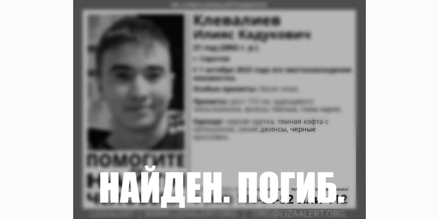 В Саратове без вести пропавшего 21-летнего Илияса Клевалиева нашли мертвым. Об этом сообщили волонтеры поискового отряда «Лиза Алерт».