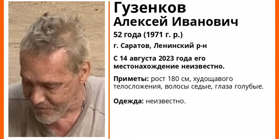 В Ленинском районе Саратова живым обнаружили 52-летнего Алексея Гузенкова, который пропал больше двух недель назад. Об этом сообщили в группе поискового отряда «ЛизаАлерт» соцсети «ВК».
