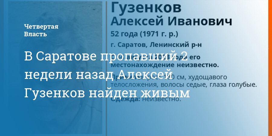 В Саратове пропавший 2 недели назад Алексей Гузенков найден живым