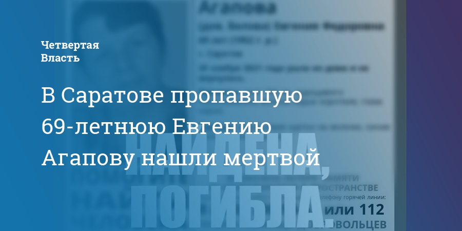 В Саратове пропавшую 69-летнюю Евгению Агапову нашли мертвой