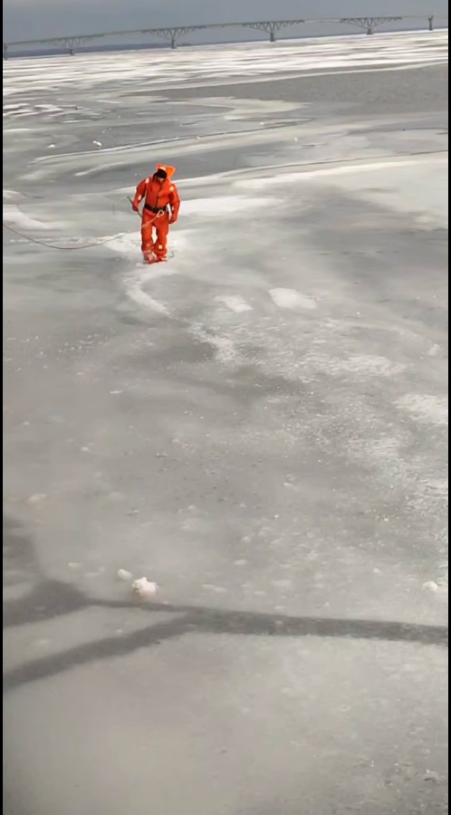 В Саратове провели операцию по спасению замерзавшей на Волге собаки