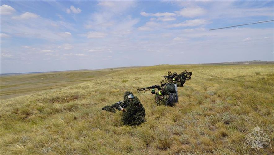 Еще росгвардейцы и сотрудники МЧС провели занятия по локализации пожара, угрожающего населенному пункту. Тренировки также сопровождались применением авиации для тушения огня с воздуха.
