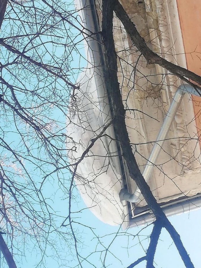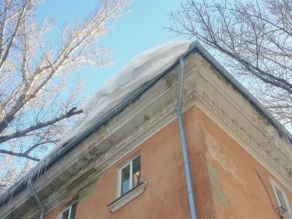 Жители Саратова продолжают делиться в соцсетях фотографиями сосулек и снежных глыб. В сообществе «ЧП в Саратове» опубликованы фотографии дома №6 по 1-му Студеному подъезду, с крыши которого опасно свисает толстый слой снега.